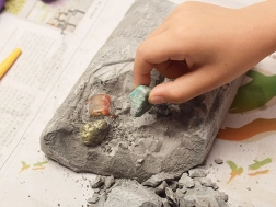 U gipsanom bloku nalazi se raznolika kolekcija minerala koja će nakon iskapanja i čišćenja obogatiti dječju zbirku i potaknuti interes za geologiju.