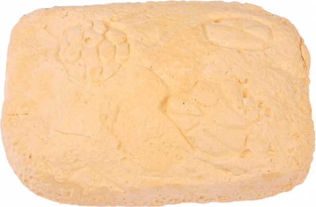 Čvrst, ali lako obradiv gipsani blok omogućuje djeci sigurno i postupno otkrivanje skrivenih kamenčića izravno na stolu.