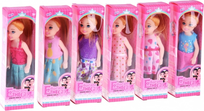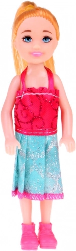 Lutkica ima pokretne udove, pa će se djeca zabaviti s više mogućnosti poziranja. Šarena haljinica s veselim uzorcima i usklađene cipelice potiču kreativnost i kombiniranje odjevnih kombinacija. Idealna kao mali poklon, za kućicu za lutke ili kao dodatak kolekciji.
