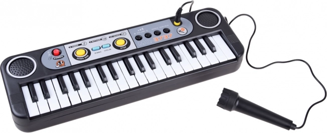 Kompaktan dječji klavijaturni sintetizator s 37 tipki i mikrofonom razvija glazbeni talent, ritam i maštu. Nudi demo primjere, promjenu ritmova, gumb STOP i mogućnost reprodukcije glazbe s vlastitog MP3. Idealan kao prvi glazbeni instrument i odličan poklon.