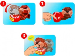 Ova zarazna igra s grizućim psom donosi jednostavna pravila i puno smijeha. Igrači redom pritišću zube ili „kosti” u zdjelici – jedna od njih je zamka. Kad je aktivirate, pas munjevito zaklopi čeljust. Pobjeđuje onaj tko zadrži mirnu ruku i najbrže reflekse.