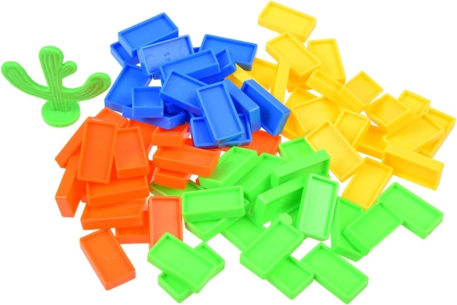 U kompletu je 80 raznobojnih pločica domina, dozirnik za jednostavno punjenje, dekorativni kaktusni spojnik i sam vlakić s prozirnim elementima koji otkrivaju njegov mehanizam. Set potiče finu motoriku, strpljenje i prostornu percepciju – idealno za samostalnu i zajedničku igru.