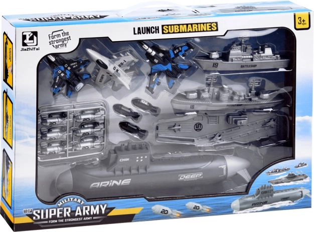 Ovaj sveobuhvatan set vojne tehnike djeci donosi svijet pomorskih operacija i zračne potpore. Zahvaljujući kombinaciji podmornice, brodova i lovaca mogu stvarati vlastite scenarije, planirati strategije i razvijati maštu. Realistični oblici, decentne boje i otisci pojačavaju atmosferu pomorske bitke.