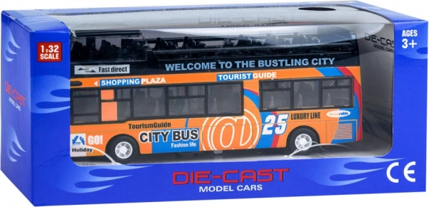 Ovaj detaljno izrađen model gradskog katnog autobusa oduševit će svako dijete. Robusna kombinacija metala i plastike osigurava izdržljivost, dok klizna vrata koja se otvaraju i unutarnja rasvjeta donose autentičan doživljaj vožnje.