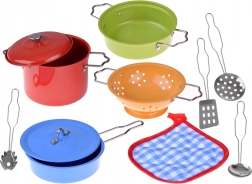 Šareni metalni set za male kuhare donosi realistično kuhanje u igri. Sadrži lonce, tavu, cjedilo i pribor te je idealan za razvoj mašte, fine motorike i igranja uloga u dječjoj kuhinjici.