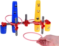 Igra kombinira dvije popularne igre: križiće i kružiće te bacanje obruča. Sadrži komponente za sastavljanje dinamične igre koja donosi dvostruku zabavu.