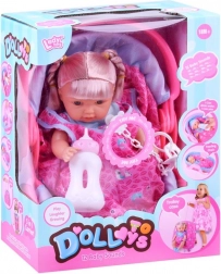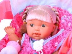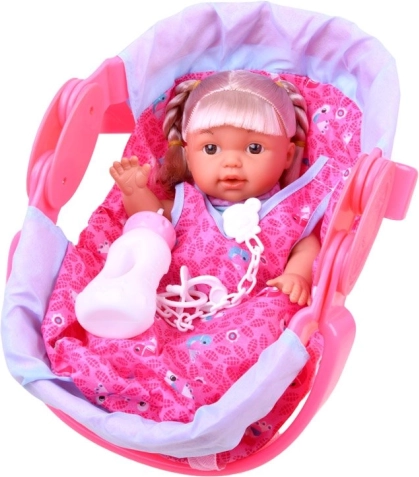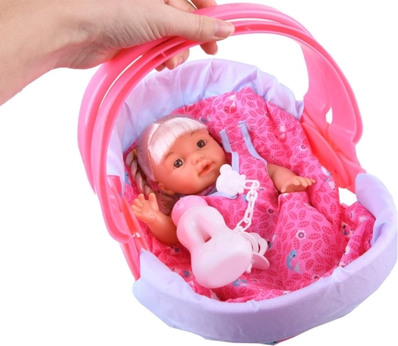 Set sadrži plastičnu lutku s pokretnim udovima i gumenim licem. Nosiljka je izrađena od kvalitetne plastike s pomičnim ručkama i remenima za pričvršćivanje, primjerice na prtljagu. Savršeno se uklapa u svaku dječju sobu. Zahvaljujući dovoljnoj veličini nosiljke, u nju se može smjestiti lutka visine do 30 cm!