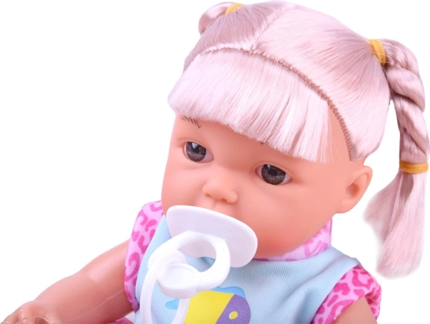 Lutka može ispuštati različite zvukove: smijeh, mama, gugutanje, baba, cmokanje, plač, radost, kihanje i podrigivanje.