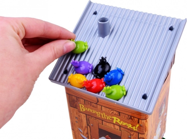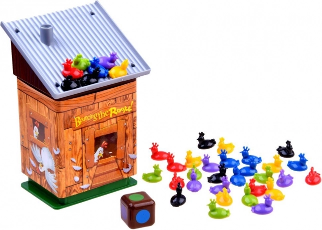 Postavi kokošinjac na sredinu stola, podijelite piliće i krenite! Igrači bacaju posebnu šarenu kocku i prema boji koja je pala stavljaju odgovarajućeg pilića na krov. Jednostavna pravila, ali velika doza napetosti – kokošinjac može u svakom trenutku iskočiti, a igrač na potezu uzima natrag nekoliko pilića. Pobjeđuje onaj tko se svojih pilića riješi prvi.