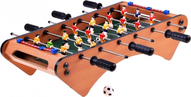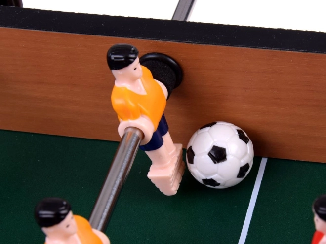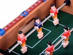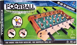 Mini stolni nogomet donosi atmosferu pravog susreta u vašu dnevnu sobu. Dvije bojem razlikovane momčadi, gladak pomak figurica na metalnim šipkama i pregledan brojač rezultata osiguravaju napete duele i odličan trening refleksa. Idealno za djecu i odrasle.