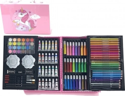 Doživite radost stvaranja umjetničkih djela s ovim kompletnim 145-dijelnim umjetničkim setom. Pohranjen u stilski plavi kovčeg s motivom jednoroga, ovaj set idealan je za razvoj kreativnosti i mašte svakog djeteta.