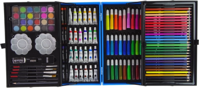 Kompletan umjetnički set u kovčegu sadrži sve važne alate, kao što su bojice, flomastere, akvarel boje i uljne pastele. Svaki dio je dizajniran kako bi pohranio specifične predmete, donoseći red u stvaranje.
