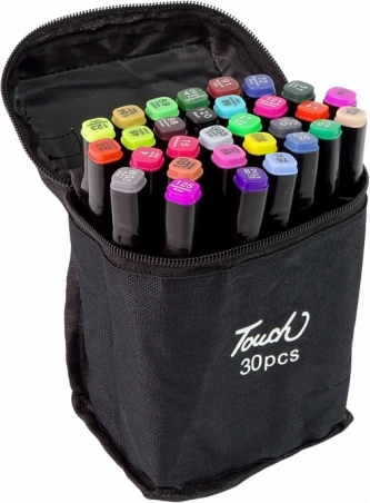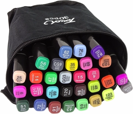 Set od 30 markera Touch donosi raznoliku paletu boja s izraženom pigmentacijom alkoholne tinte, koja osigurava bogate i postojane crteže. Markeri imaju dva vrha – široki plosnati za velike površine i tanki za detalje, što pruža maštovite mogućnosti pri crtanju. Vrhovi su izrađeni od izdržljivog materijala, a distribucija tinte je ujednačena, pa se ne morate brinuti o isušivanju ili razlijevanju.