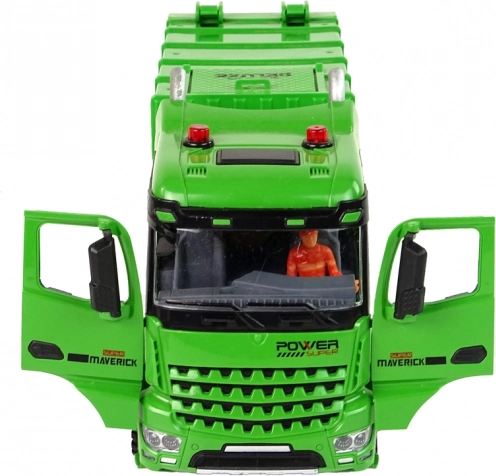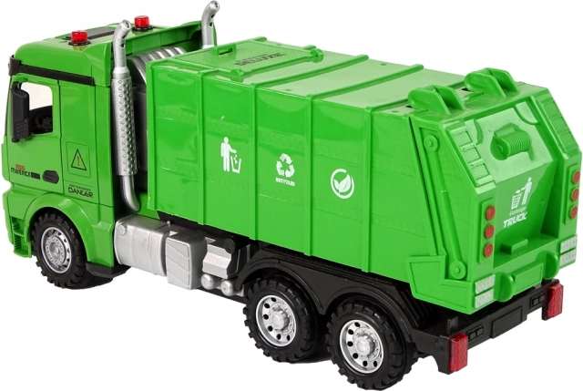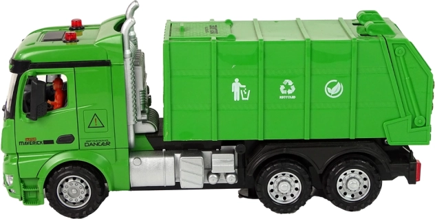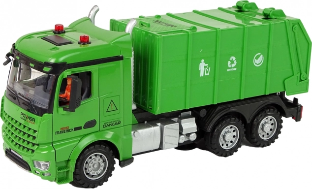 Ovo daljinski upravljano smetlarsko vozilo u zelenoj boji s reciklažnim simbolima vjerno oponaša pravo vozilo. Djeca će uživati u realističnim efektima – prednjim svjetlima, zvukovima motora i vožnje unatrag te pokazivačima smjera pri skretanju. Vozilo je izvrsno za igru u kući i na otvorenom te prirodno potiče svijest o razvrstavanju otpada.