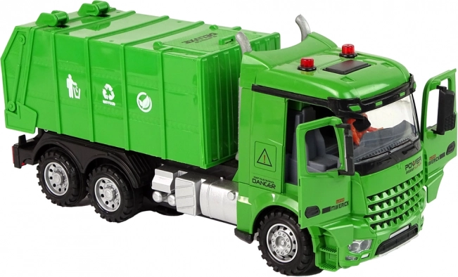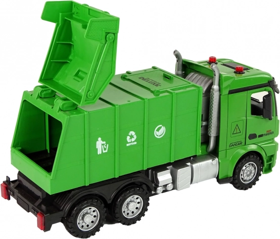 Zeleno smetlarsko vozilo na daljinsko upravljanje donosi realističnu zabavu i učenje. Zahvaljujući frekvenciji 2,4 GHz, funkcionalnim svjetlosnim i zvučnim efektima te otvarajućim vratima, djeca se lako mogu igrati razvrstavanja otpada. Idealna igračka za razvoj mašte i fine motorike, prikladna od 6 godina.