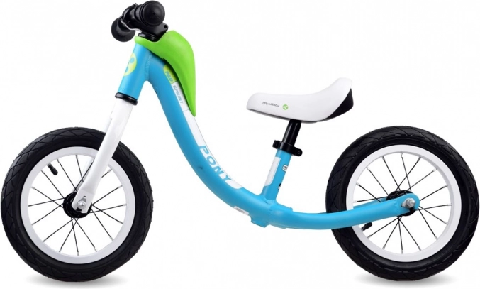 Guralica RoyalBaby PONY Sprint idealan je prvi bicikl za male vozače. Aluminijska konstrukcija (osim prednje vilice) s niskim ulazom olakšava penjanje i silazak, dok 12" zračne gume odlično ublažavaju neravnine. Djeca prirodno vježbaju ravnotežu i koordinaciju bez potrebe za pomoćnim kotačićima.