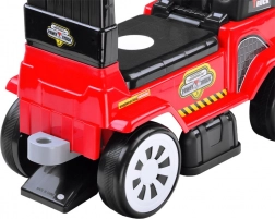 Prikolica se lako priključuje i sadrži otvore za pohranu priloženog alata – lopatice i grabljica. Ispod sjedala nalazi se praktična skrovita kutija za sitna blaga. Okretna prednja kola olakšavaju upravljanje i potiču razvoj motorike i mašte tijekom igre.