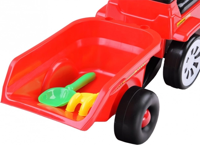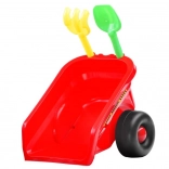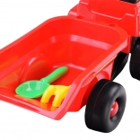 U kompletu je odvojiva prikolica s držačima za lopaticu i grabljice. Djeca mogu voziti igračke, pijesak ili sitnice u vrtu i kod kuće.