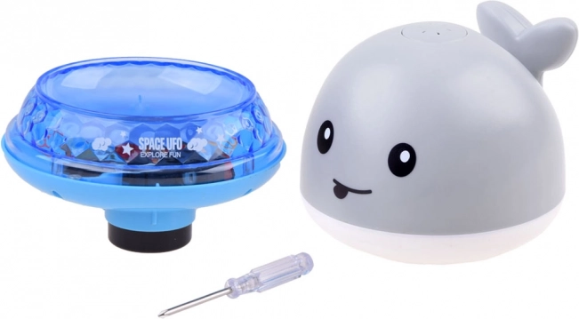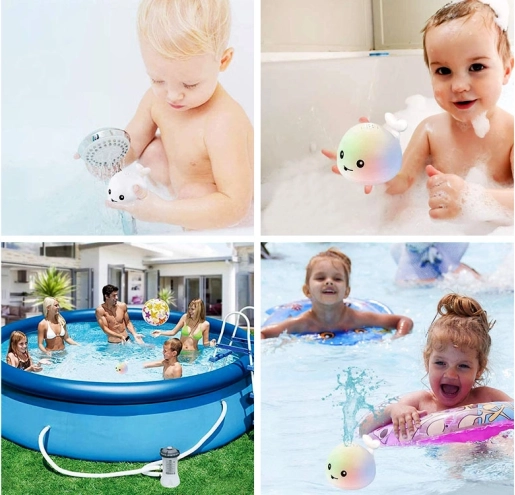 Slatki vodeni kit pretvara svako kupanje u zabavu. Nakon uranjanja sam se aktivira, štrca vodu poput mini fontane i prati ga šarena LED svjetla. Kada se postavi na platformu, pokreće se, kreće se u ritmu vesele glazbe i svijetli – idealno za kadu, bazen i razigrane trenutke u kupaonici.