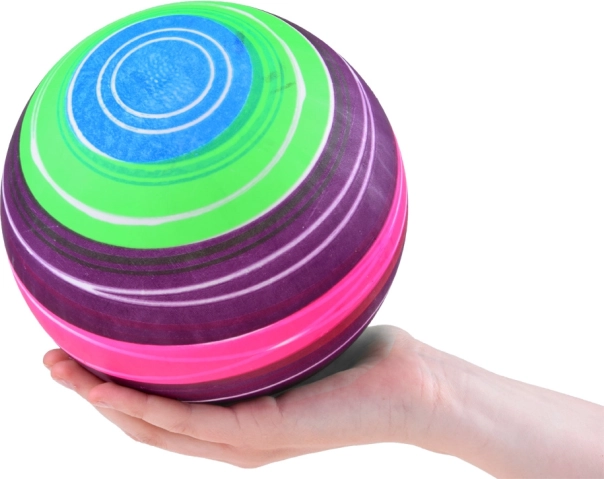 Ova šarena lopta izrađena je od kvalitetne gume, zahvaljujući čemu se lako napuhuje i donosi sate izvrsne zabave. Zahvaljujući svojim magičnim bojama uvijek je uočljiva i lako ju je pronaći.
