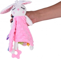 Plišana mazilica zeko s oznakama i grickalicom za bebe – Ružičasta
