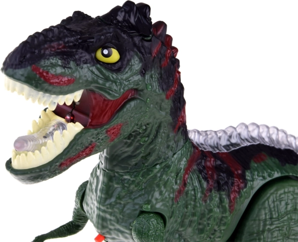 RC dinosaurus savladava hodanje naprijed i natrag, okretanje za 360°, riku i zabavne plesne režime s glazbom. Nakon dolijevanja vode u spremnik u glavi iz čeljusti se širi hladna para osvijetljena crvenim LED svjetlom koja izgleda poput užarenog plamena – sigurno i bez mirisa.