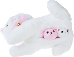 Dva mala mačića skrivena u maminoj trbuščiću potiču igru brige i razvoj mašte. Meki pliš poziva na zagrljaj.