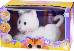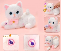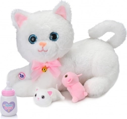 Interaktivna bijela mačka savršen je pratitelj za male ljubitelje životinja. Ima velike plave oči, ružičastu mašnicu sa zvončićem i mekan pliš koji jednostavno mami na maženje. U trbuščiću skriva dva mala mačića, a u pakiranju je i ružičasta bočica za igru hranjenja.