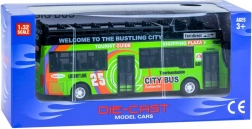 Stilski metalni katni autobus razveselit će male vozače i putnike. Zahvaljujući pull-back mehanizmu, kliznim otvarajućim vratima, svjetlosnim efektima i zvukovima motora donosi realističnu zabavu kod kuće i na putu. Metalna karoserija i pažljiva izrada osiguravaju izdržljivost i dug vijek trajanja igračke.