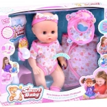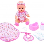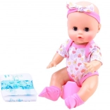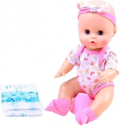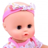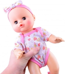 Lutka je odjevena u udoban bodi s mekom trakicom za kosu i čarapicama. U pakiranju se nalaze i kahlica, pelena, podbradak, bočica i duda, pa ništa ne stoji na putu potpunoj njezi. Veličina oko 30 cm idealna je za dječje ručice i lako nošenje.