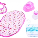 U pakiranju je sve za potpunu njegu – podbradak, bočica, duda, pelena i kahlica. Pripremite lutku za hranjenje i presvlačenje.