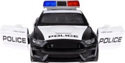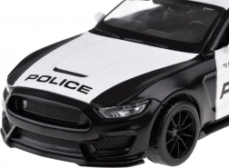 Razveselite male i velike ljubitelje automobila modelom policijskog vozila Ford Mustang Shelby GT350. Metalna karoserija u crno‑bijeloj kombinaciji s natpisima POLICE, funkcionalna otvarajuća vrata i bljeskajuća rotirajuća svjetla daju igrački autentičan izgled. Pritiskom ili otvaranjem vrata aktiviraju se svjetla i sirena, pa je doživljaj igre još realističniji.