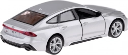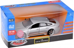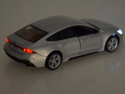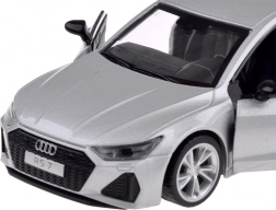 Elegantni srebrni model AUDI RS 7 Sportback izrađen je od metala s plastičnim podvozjem i ističe se preciznom obradom detalja. Otvarajuća vrata otkrivaju interijer, dok se prednja i stražnja svjetla te autentični zvukovi brinu za dozu zabave i realizma.