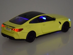 Ovaj detaljno izrađen model sportskog automobila BMW M4 kombinira metalnu karoseriju, gumene kotače i izdržljivo plastično podvozje. Interaktivne funkcije poput otvarajućih vrata, svjetala sprijeda i straga te osvijetljene instrumentne ploče donose realističan doživljaj igre i izlaganja.