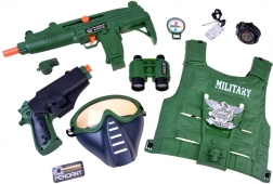 Ova kompletna vojna oprema razveselit će svakog malog avanturista. Zahvaljujući laganom taktičkom prsluku i širokom rasponu dodataka, djeca se lako mogu uživjeti u uloge izviđača, stražara i junaka. Oružja sa zvučnim efektima i odvojiva maska daju igri autentičnost, dok kompas i dvogled potiču maštu i orijentaciju na terenu.