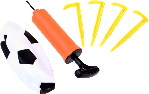 U pakiranju se nalazi gol s mrežom, lopta, pumpica i 4 klina za učvršćivanje – sve što je djeci potrebno za trenutnu igru.