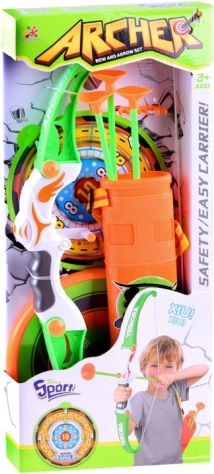 Zabavan i siguran streličarski set za djecu sadrži luk, zidnu metu, 3 strijele s vakuumskim nastavcima i tuljac. Zahvaljujući mekanim vakuumskim nastavcima igra je sigurna i u interijeru, a žive boje i lako korištenje potiču preciznost, koordinaciju i strpljenje.