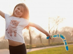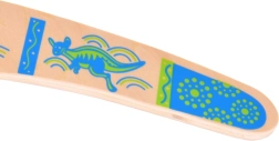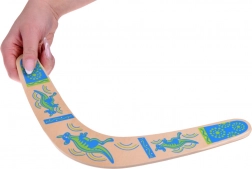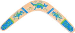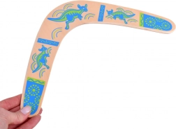 Drveni bumerang inspiriran je australskom tradicijom i prilagođen modernoj rekreativnoj igri. Njegov uravnotežen profil i pravilna rotacija omogućuju povratak bacaču uz ispravno bacanje. Šareni otisci s motivima klokana dodaju stil i povećavaju vidljivost u zraku.
