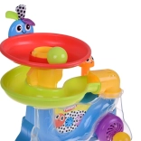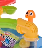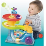 Ova kultna igračka brenda PLAYSKOOL spaja čaroliju pokretnih loptica s jednostavnim upravljanjem. Djeca ubacuju loptice u lijevak, prate njihovo vrtloženje i ponovno pojavljivanje na vrhu, odakle se kotrljaju niz spiralnu stazu. Ritam pokreta i jarke boje privlače pažnju i potiču koncentraciju.