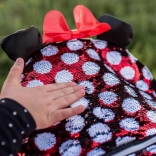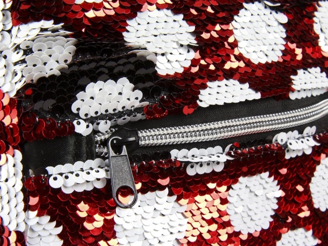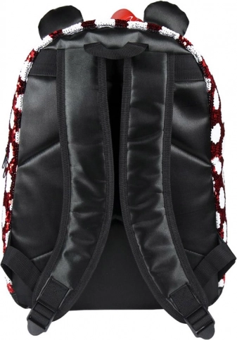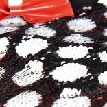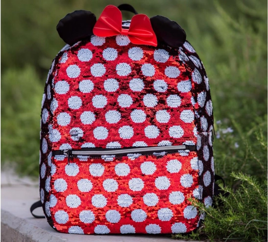 Torba s prepoznatljivim Minnie uzorkom u crveno-bijeloj kombinaciji s točkicama, ukrašena crvenom mašnom i sjajnim ušima, doista je čarobna.