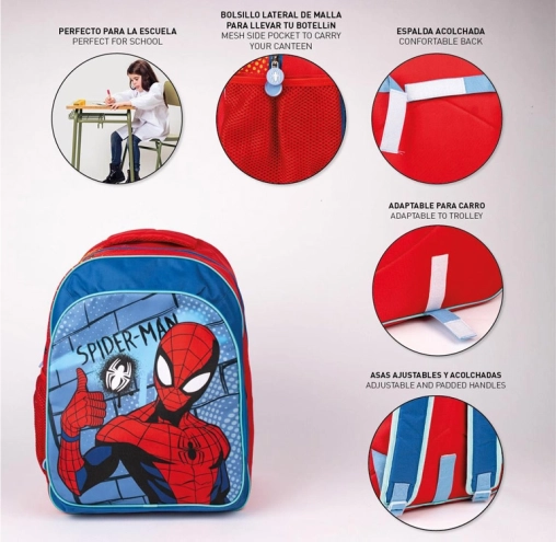 Ova torba Spider-Man dizajnirana je za udobnost i praktičnost. Podstavljene i podesive ramene naramenice osiguravaju ugodno nošenje i pri duljoj uporabi. Glavni pretinac pruža dovoljno prostora za sve potrebne školske potrepštine.