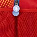 Glavni pretinac s prednjim džepom na patentni zatvarač i bočnim mrežastim džepom olakšava organizaciju školskog pribora.