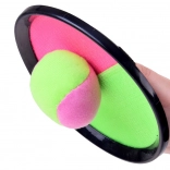 Podijeljena hvatna površina u neonski zelenoj i ružičastoj boji s čičkom hvata lopticu trenutno – idealno za vježbanje preciznosti i refleksa.