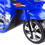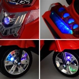Sportski dječji motor na baterije s šarenim LED osvjetljenjem sprijeda, sa strane i u kotačima pruža odličnu zabavu i bolju vidljivost. Zahvaljujući kompaktnim dimenzijama idealan je za stan i terasu, ima električni kočni sustav, zvuk motora i vesele melodije te praktičan stražnji koferić za sitnice.