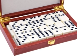 Domino je logička igra u kojoj se koriste pločice zvane kamenčići. Svaki kamen je podijeljen na dva kvadratna polja s označenim točkicama, slično kao kocka za bacanje. Ova najpopularnija verzija sadrži 28 kamenčića s kombinacijama brojeva od 0 do 6. Igra je dizajnirana za 2 do 4 igrača. Savršeno za obiteljske večeri i okupljanje s prijateljima.