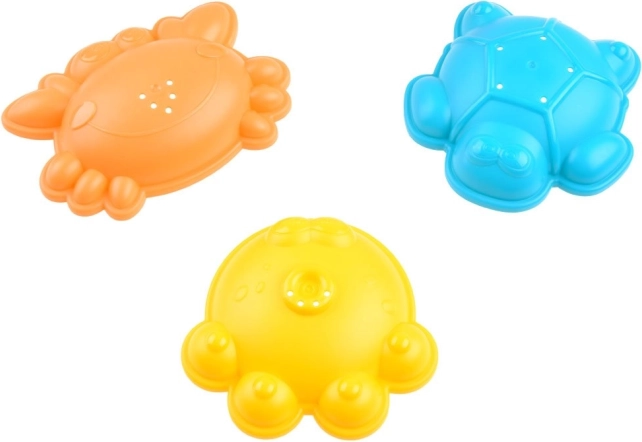 Tri kalupa s motivima raka, kornjače i hobotnice osiguraju puno zabave. Svaki ima otvore za lako oslobađanje pijeska.