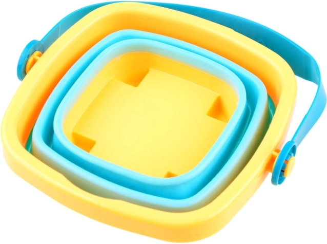 Zahvaljujući upotrebi fleksibilnog silikona na stranicama i čvršće plastike na dnu i rubovima kanta se lako sklapa nakon završetka igre. Zauzima manje mjesta i lako se prenosi i skladišti. Kalupi imaju male otvore, tako da se mogu koristiti i kao posudice za vodu.