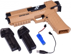 Ovaj moderni pištolj na vodu koristi električni mehanizam – pritisnete okidač i motor odmah pokreće kontinuirani mlaz vode. Izdržljiva plastična konstrukcija i ergonomska drška s protukliznom teksturom jamče siguran hvat i jednostavno upravljanje čak i za mlađu djecu.