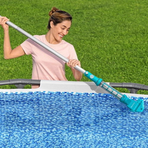 Bežični usisavač za bazen Bestway AquaSurge praktično je rješenje za brzo i učinkovito uklanjanje pijeska, lišća i sitnih nečistoća. Zahvaljujući kompatibilnosti s bazenima promjera do 610 cm idealan je za većinu vrtnih bazena. Lagana troslojna teleskopska šipka osigurava udoban doseg i jednostavno rukovanje.
