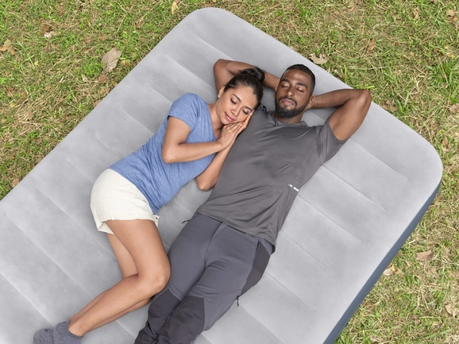 Ugrađena izmjenjiva akumulatorska pumpa puni se putem USB-a, napuhne madrac približno za 4 minute i na jedno potpuno punjenje omogućuje do dva napuhavanja. Gornja strana presvučena je mekim vinilnim materijalom za veći komfor i ugodan dodir.
